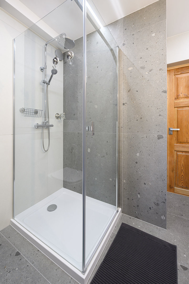 W łazience jest wygodny prysznic, płyn do kąpieli, ręczniki i suszarka do włosów oraz naturalny odświeżacz powietrza naszej produkcji Siedlisko Naturalnie..