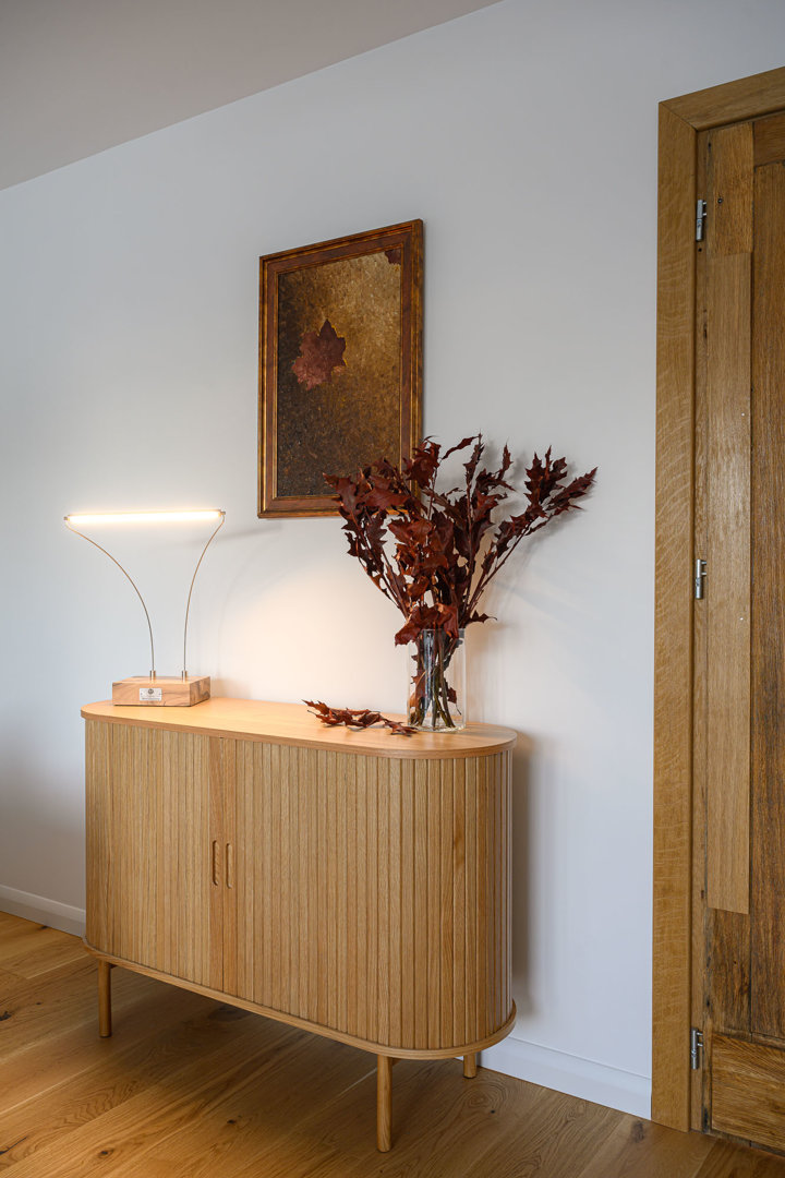 We wnętrzu wykorzystaliśmy elementy domu sprzed remontu - stare drewniane drzwi zostały odrestaurowane, a marmurowe blaty wypolerowane i przerobione na stoliki i parapety.