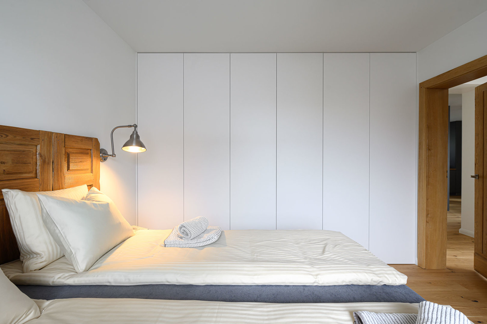 Apartament jest przeznaczony dla 2 - 4 osób. W sypialni znajduje się szerokie, podwójne łóżko z oryginalnym wezgłowiem oraz zabudowane szafy, które pomieszczą wszystkie rzeczy przy dłuższych pobytach. W pokoju dziennym znajduje się rozkładana kanapa. Pokój dzienny jest połączony z kuchnią, wyposażoną w urządzenia niezbędne do samodzielnego przygotowania posiłków i zapewniających codzienny komfort. Oprócz sprzętów podstawowych znajdziecie tu ekspres z automatycznym młynkiem do kawy, czajnik z regulacją temperatury (dla miłośników różnych gatunków herbaty) oraz piekarnik z mikrofalą sterowany przez aplikację.